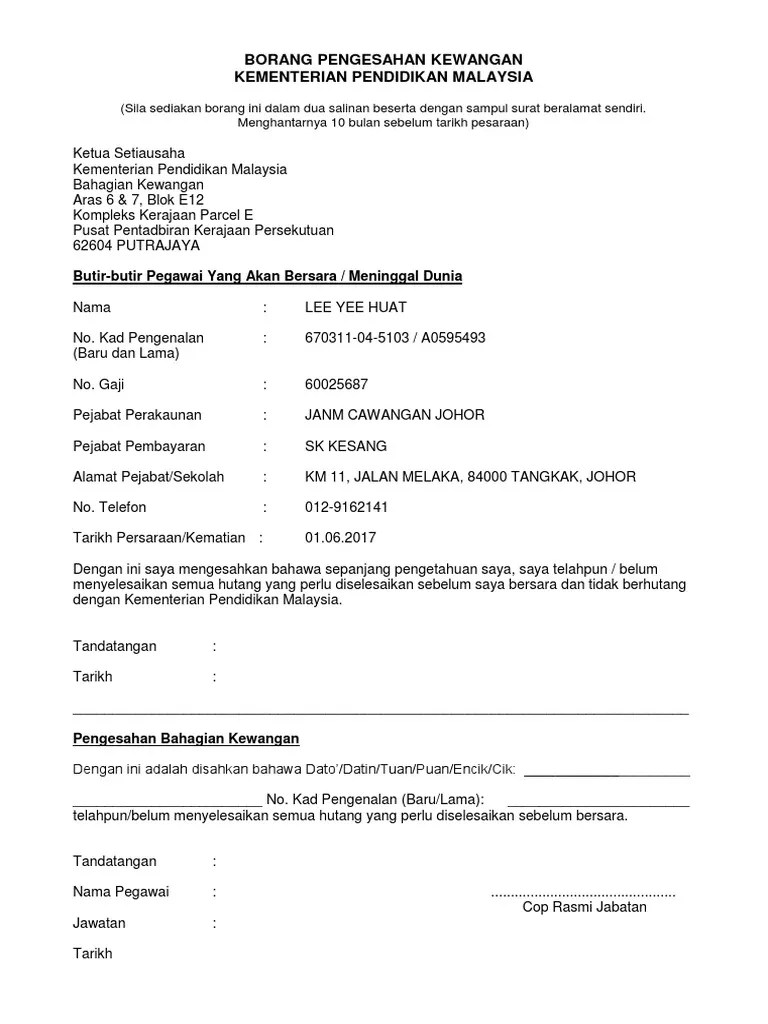Borang Pengesahan Kewangan Kpm Untuk Persaraan Atau Kematian from grafikpendidikan.com Pendidikan ptptn, 1 sila cetak dokumen tawaran daripada laman web yang mengandungi dokumen dokumen berikut. Tarikh borang pengesahan kewangan kementerian pendidikan malaysia. Oleh yang demikian, kementerian pendidikan malaysia disarankan. Memaparkan senarai jawatan di gred 29 yang boleh dimohon oleh calon yang memiliki kelayakan sijil matrikulasi kementerian pendidikan malaysia (kpm), selaras dengan surat pekeliling perkhidmatan bilangan 3 tahun 2016. Pelajar tidak dibenarkan mempunyai penaja cawangan pra perkhidmatan 2 bahagian biasiswa & pembiayaan kementerian pendidikan malaysia aras 1, blok. * pengesahan hendaklah dibuat oleh pegawai kerajaan kumpulan a (pengurusan dan professional)/pengerusi. Ketua setiausaha kementerian pendidikan malaysia bahagian kewangan aras 6 & 7, blok e12 kompleks kerajaan parcel e pusat pentadbiran kerajaan persekutuan 62604 putrajaya. Sijil matrikulasi kementerian pendidikan malaysia.