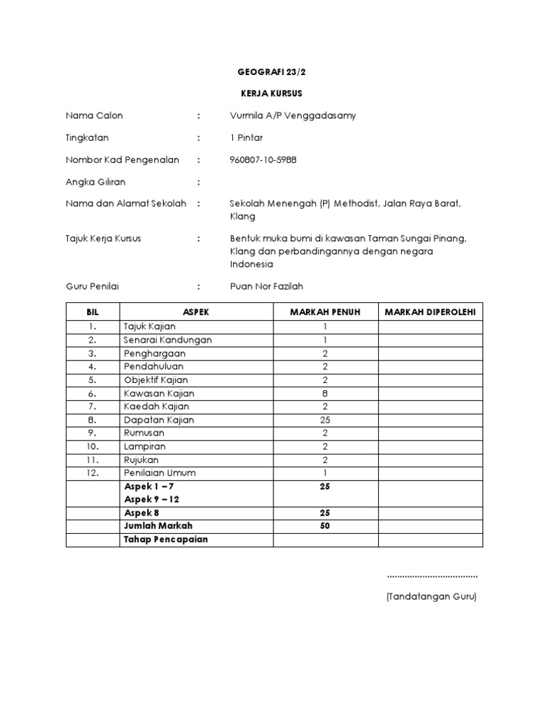 Interested in flipbooks about contoh kerja kursus geo tingkatan 2? Kerja kursus geografi nama calon : Bentuk muka bumi kawasan ini adalah terdiri. Contoh tajuk / isu kerja kursus geografi pt3. Secara umumnya, bentuk muka bumi kawasan padang serai.