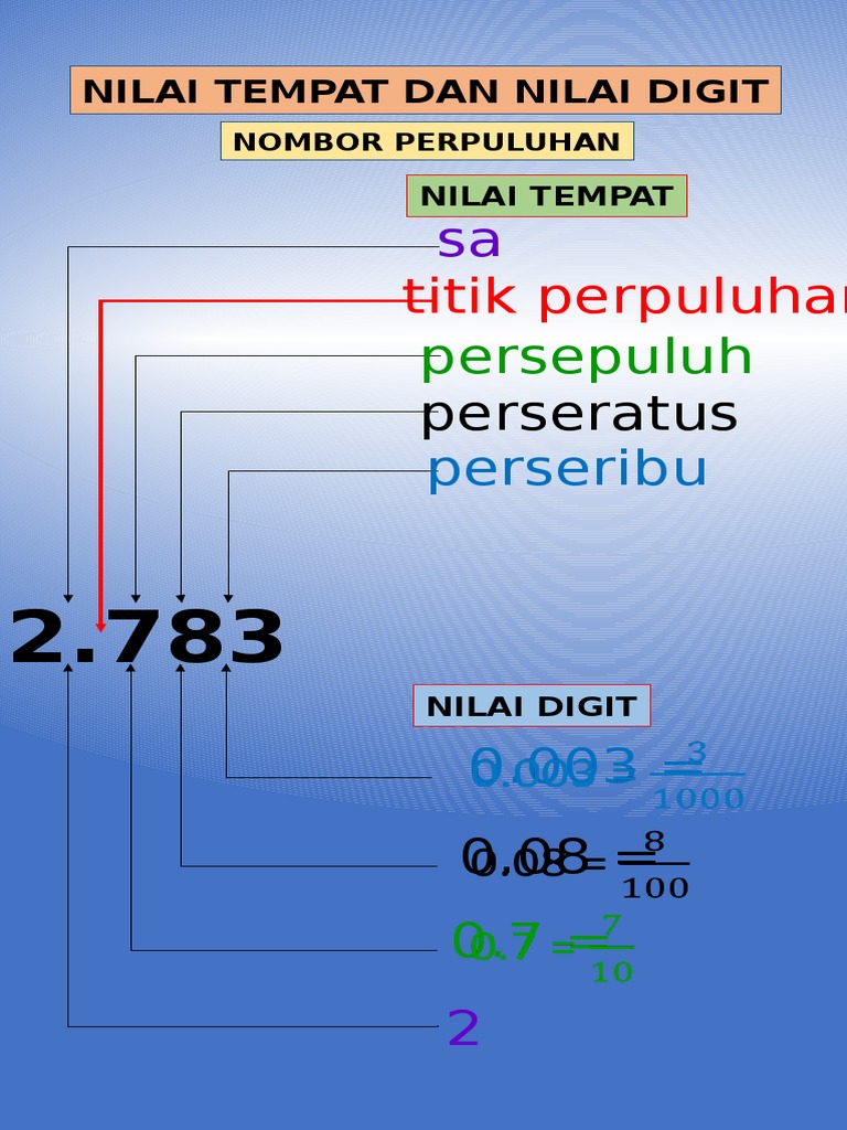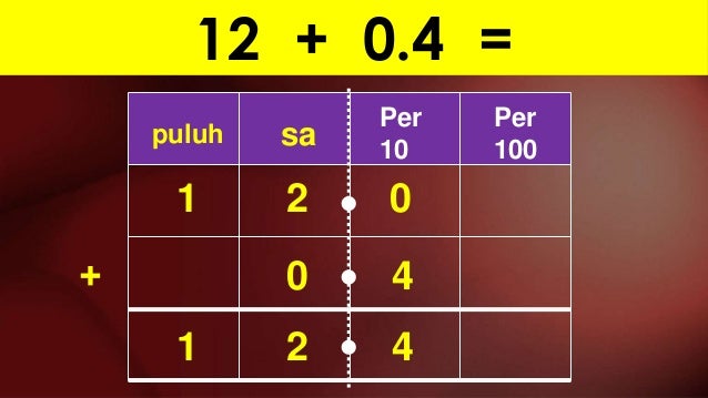 Perpuluhan In English from image.slidesharecdn.com Konon menurut hikayat dari alkitab, perpuluhan dimulai dari abraham ketika menyerahkan hasil peperangannya sebesar 10% (sepuluh persen). Perpuluhan ialah nombor yang mempunyai titik perpuluhan padanya. Titik terapung perpuluhan adalah sistem aritmetik komputer yang berkait rapat dengan notasi saintifik. Perpuluhan positif dan perpuluhan negatif. 2 titik perpuluhan untuk xauusd dan 3 titik perpuluhan untuk xagusd. If you want to learn titik perpuluhan in english, you will find the translation here, along with other translations from malay to english. Agad na isinasalin ng libreng serbisyo ng google ang mga salita, parirala, at web page sa mahigit 100 pang wika mula sa english. The english for titik perpuluhan is decimal place.