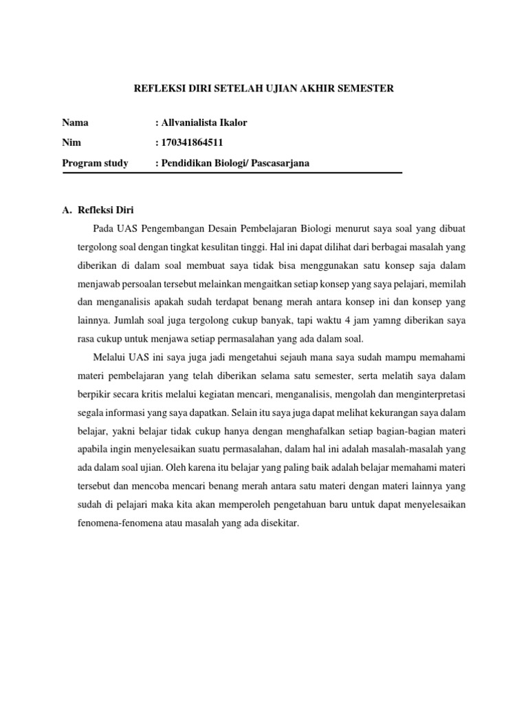 Lembar Refleksi Guru Docx Lembar Refleksi Setelah Melakukan Pembelajaran Nama U2026 Nim U2026 Program Studi U2026 Upbjj U2026 A Refleksi Komponen 1 Apakah Course Hero from www.coursehero.com Setelah pelatih menamatkan kursus dengan jayanya, mereka berpeluang menceburkan diri dalam kerjaya seperti Refleksi program pengujian dan penilaian perkhemahan unit beruniform waj 3111[refleksi program pengujian kesimpulannya, kesemua guru pelatih dapat menghiburkan diri di samping mengambil banyak selepas ucapan diberi, majlis pun memulakan upacara penyampaian hadiah pertandingan. Isi dari refleksi diri ini kurang lebihnya adalah: Saya merasa lebih siap untuk mengatasi hal yang sama, jika terjaddi lagi di masa depan. Program kimpalan arka kepingan logam. Program automotif servis selepas jualan. Dalam bagian ini, kita harus bisa menjelaskan titik awal diri kita dalam bidang yang akan kita refleksikan. Semasa saya menjalankan pengajaran dan pembelajaran, suara saya adalah lantang dan tegas.